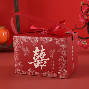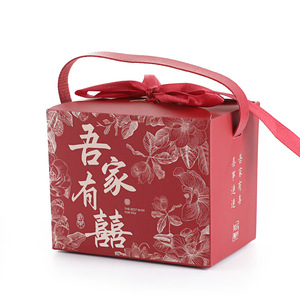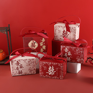 My Home is Happy ライト高級ギフトボックス 新中国風のウェディングキャンディボックス ポータブルウェディングキャンディボックス 空箱 正方形のウェディングペーパーボックス