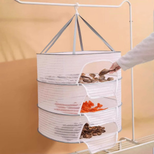 折りたたみ式家庭用バルコニー物干しバスケット、防風防蚊ネットカバー、野菜物干しバスケット、ネットバッグ、平らな物干しネット工場卸売