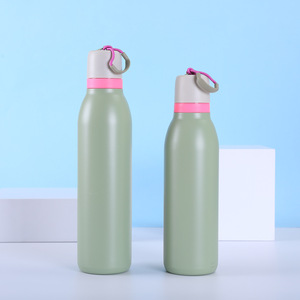 马卡龙色系保温杯304不锈钢带提绳小口瓶男女户外登山运动水壶