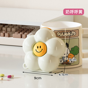多巴胺花朵药盒便携药品分装盒一周七天随身迷你小药盒密封收纳盒
