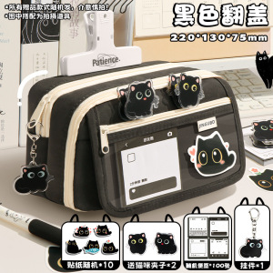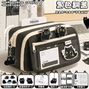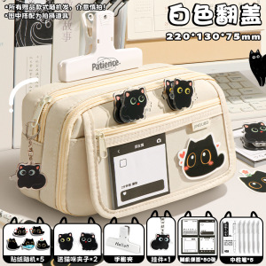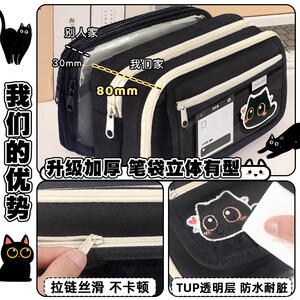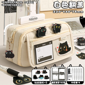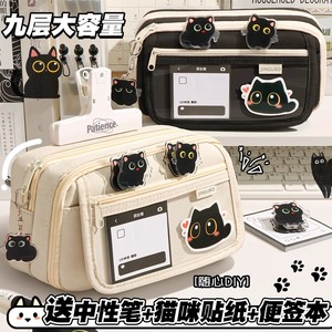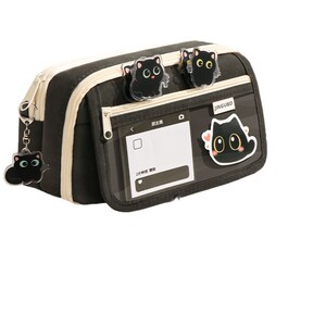 猫の大容量鉛筆バッグ、汚れに強く、透明で多層仕切り付き鉛筆バッグ、インスタイル中学生男女文具バッグ