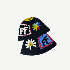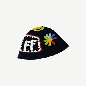 GD グァン・ジロンのコンサートと同じスタイルの手編みデイジースマイリーフェイスフィッシャーマンハット、女性用、大きな頭囲、アメリカンボウルハット、男性用トレンディ