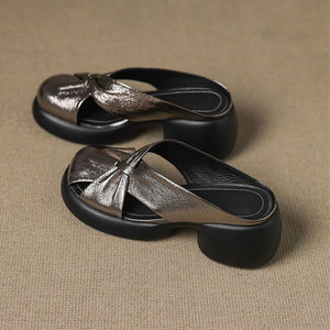 女性の夏のアウターウェア用包頭ハーフスリッパ 2025 新しい厚底サンダル 2025 新しい厚いヒールの多用途サンダル