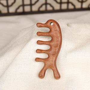 天然绿檀木海马经络梳养生头部按摩梳头皮五指疏通梳宽齿刮痧梳子