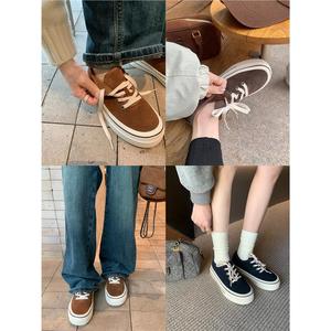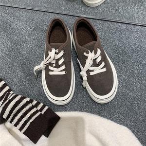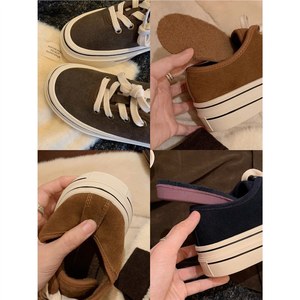 葡萄妈studiolee 圆头厚底加绒系带帆布鞋低帮百搭休闲风板鞋秋冬