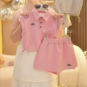 女童套装夏季百搭新款儿童洋气POLO领上衣夏装女孩休闲裙裤两件套