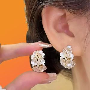 フレンチニッチデザイン人気フラワーイヤリング、軽い高級感と高級感のあるイヤリング、絶妙な通勤ファッション、女性向けの万能イヤリング