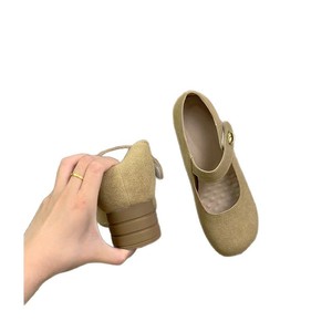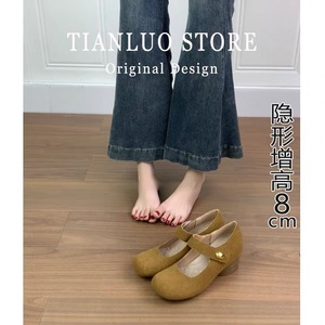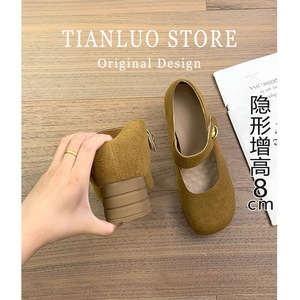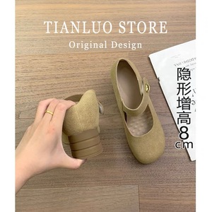 女性のためのフランスのインナー高さの靴 2025 夏の新しいスタイルの浅い口の小さな金豆気質レトロな厚いハイヒールのメリージェーンシューズ