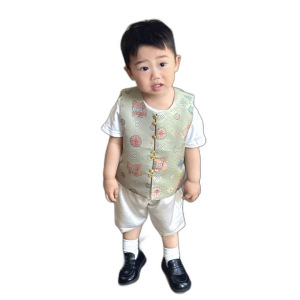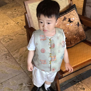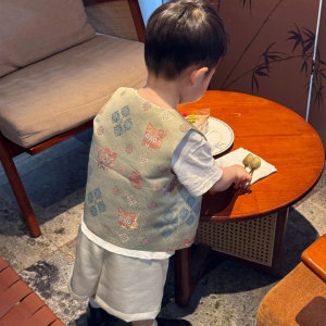 男の子の新しい中国風漢服子供の夏服 2025 新しい薄い中国風のアウターベスト女の赤ちゃんのハイエンドスーツ