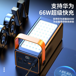 跨境超大容量66W超级快充100000毫安充电宝户外露营LED灯移动电源