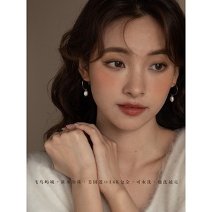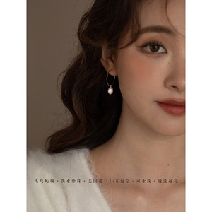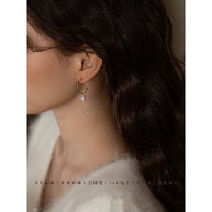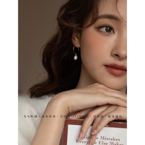 天然珍珠淡水珍珠耳环法式高级感耳圈女气质小巧精致耳饰女