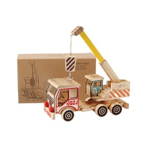 木制汽车模型摆件批发仿真吊车起重机模型儿童木质工程车玩具