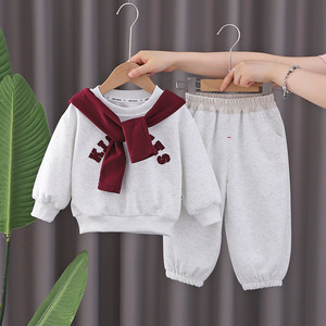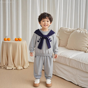 男の子の春と秋のスーツ新しいスタイルの小さな男の子韓国スタイルのショールスウェットシャツスポーツウェア子供用 2 点セット