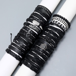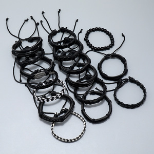 クロスボーダー新しいヨーロッパとアメリカのレトロな手織り多層レザーメンズブレスレット DIY セット - シンプルで多用途なハンドアクセサリー
