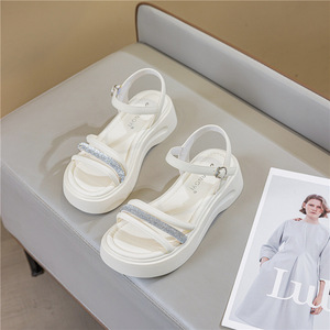 大きいサイズのサンダル女性用 41-43 厚底ラインストーンワンストラップアウターウェア 2025 新しい夏の厚いヒールローマサンダル