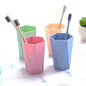 定制简约菱形牙刷杯创意漱口杯小麦秸秆刷牙杯家用牙缸情侣洗漱杯