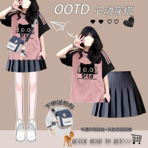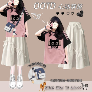 粉色T恤+蝴蝶白裙送蓝包 G933#