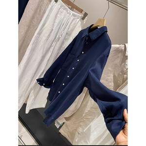 复古老钱风苎麻白色防晒衬衫外套女早秋轻薄宽松亚麻透气罩衫上衣