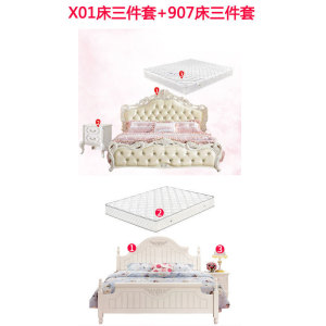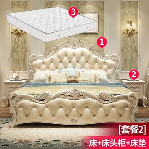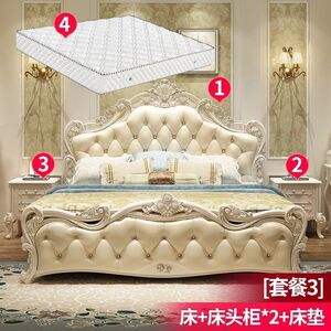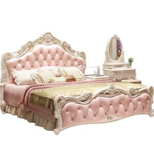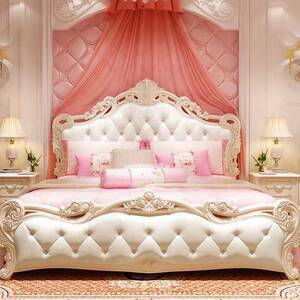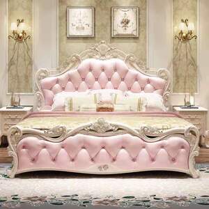 ヨーロピアンスタイルベッドモダンシンプル無垢材プリンセスベッドシンプルヨーロピアンダブルベッドピンクレザーウェディングベッドマスターベッドルーム家具組み合わせセット