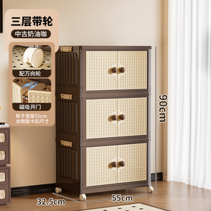 キャビネット折りたたみ収納ボックス両開きドア家庭用衣類収納キャビネット整理中世スタイルのレトロな多層収納家具