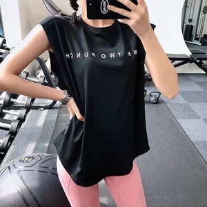 アイスシルクスポーツ Tシャツ女性の大きいサイズ 150kg ルーズベストランニングカバーアップノースリーブスポーツトップヨガウェア外国貿易