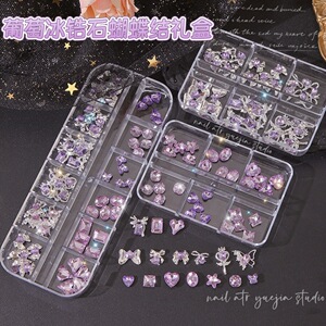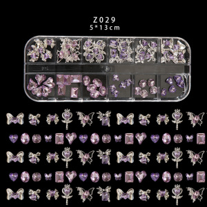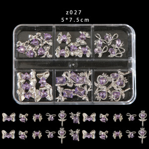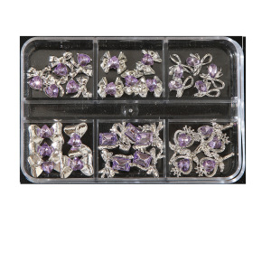 クロスボーダー爆発モデル 6 グリッドネイルアート合金ジュエリー紫色の特殊形状ダイヤモンド卸売紫色の弓セットネイルデコレーション