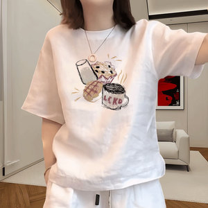 半袖2025新作おしゃれな純綿Tシャツレディース年齢軽減夏スタイルトップス