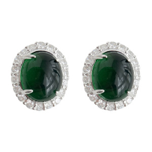 オーバル エメラルド ジルコン - シルバー ニードル