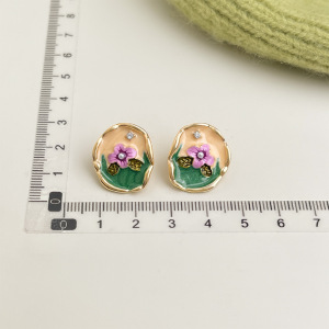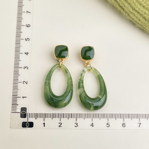 「グリーンシャドウ」レトログリーンオイルドロップフラワーイヤリングフレンチライトラグジュアリージルコンイヤリング油絵風イヤリング