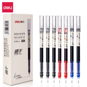 得力S865直液式走珠0.38mm笔黑色中性笔学生考试用速干笔签字笔