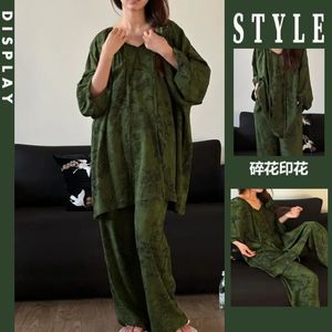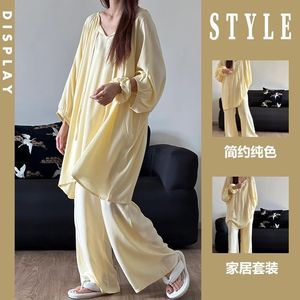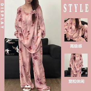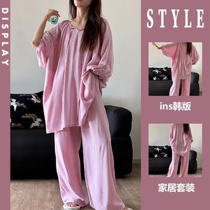 フレンチスタイルの優しい雲綿七分袖ズボンパジャマ女性のための春と夏の新しいインターネットセレブスタイルのゆったりとしたホームウェアセット