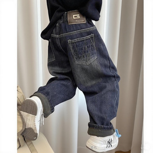男童韩版牛仔裤儿童秋冬季加绒裤子新款男孩中大童宽松牛仔长裤