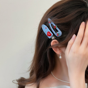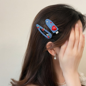 デニムブルー愛かわいいカモノハシヘアピン三角リボンBBクリップヘアピンヘッドバンドサイド前髪クリップヘアアクセサリー