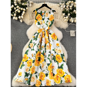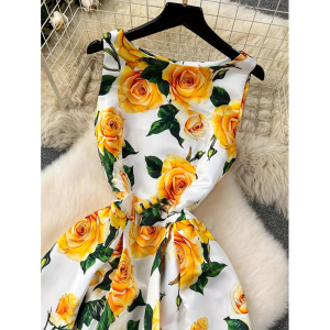 スポット外国貿易アマゾン独立ステーションクロスボーダーヨーロッパとアメリカの服夏の花柄ウエストレディースドレス
