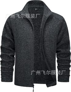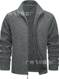 クロスボーダーヨーロッパとアメリカのメンズジャケットアマゾン長袖スタンドカラーポーラーフリース無地両面ベルベットソフトカジュアルメンズジャケット