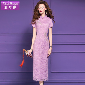 Feimengyi オリジナルレースパープル新中国ドレス女性の夏の国民風エレガントで優しい気質のチャイナドレス