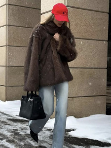 Ins レイジースタイルフォックスファーコートヨーロッパとアメリカの厚く暖かい模造毛皮コートミッドレングスぬいぐるみカーディガン