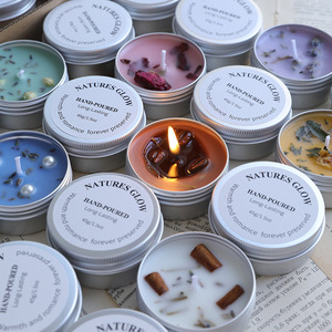北欧スタイルの家の装飾キャンドルシルバー缶ドライフラワーアロマキャンドル屋内長期持続フレグランスキャンドルお土産キャンドル