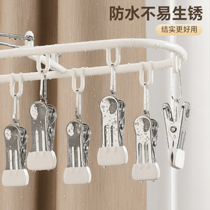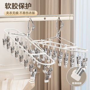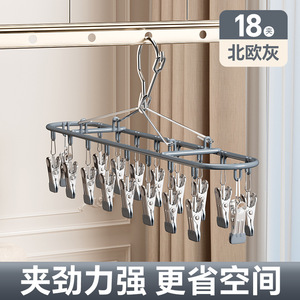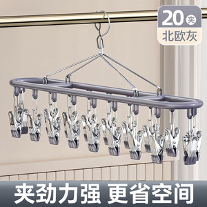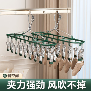 クリップ付き靴下ハンガー ステンレス鋼 家庭用シームレス防風バルコニー下着乾燥多機能衣類乾燥ラック