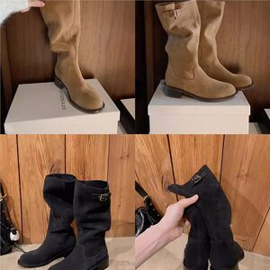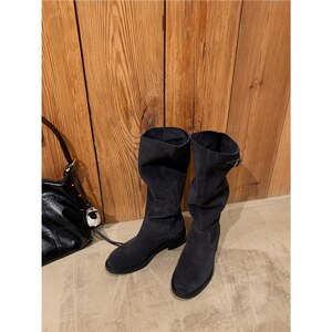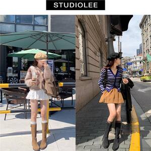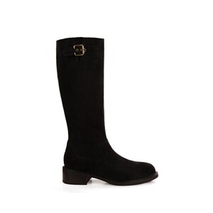 葡萄妈studiolee 新款美拉德尖圆头真皮长靴扣带粗跟中高筒靴女秋
