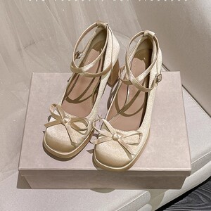 サテンメリージェーンシューズフレンチジェントルソフトソールスモールシューズレディース2025春ボウローハイヒール浅口
