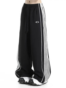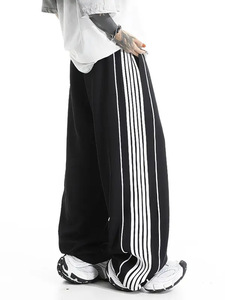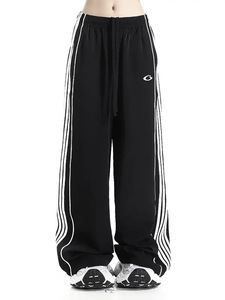 25SS【冰丝巴黎】高品质新款白侧杠刺绣宽松运动休闲裤男阔腿卫裤
