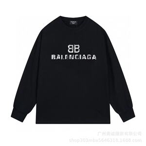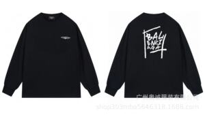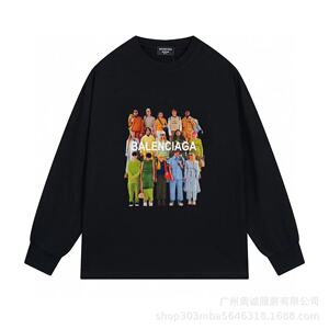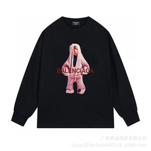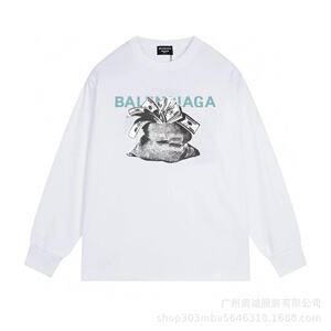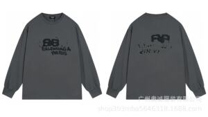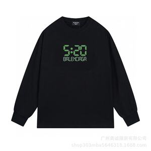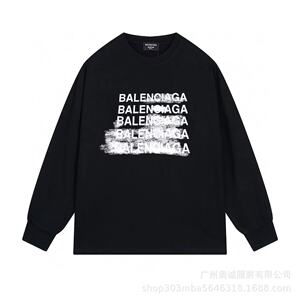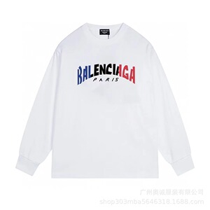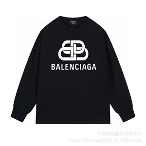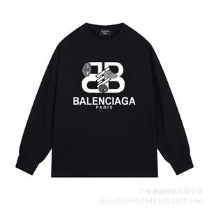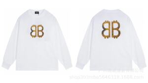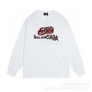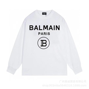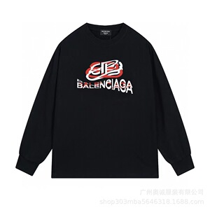 跨境外贸24ssB家秋季BB家logo印花长袖280克精梳棉长袖t 恤男女款