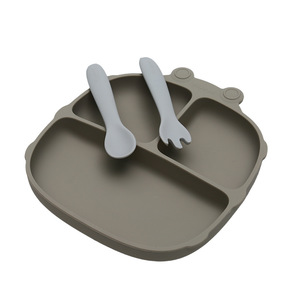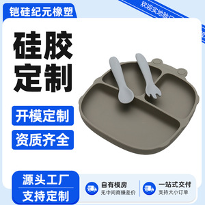 卸売子供用食器セットシリコーン食器ポータブル正方形一体型子供用シリコーン滑り止めディナープレート