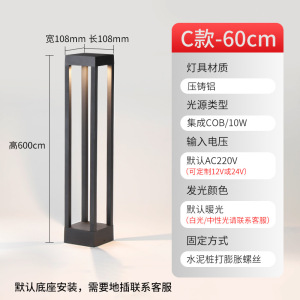 C スタイル正方形 4 透明芝生ランプ 10W-80CM 長い暖かい光