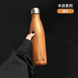 外国貿易カスタマイズされたスウェル同じスタイルの二層ステンレス鋼断熱カップファッショナブルな木目調屋外ポータブルコーラボトルギフト