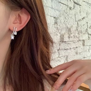 韓国風フラッシュシュガーキュービックジルコニアリボンパールイヤリング、ハイエンドの軽い高級イヤリング、甘くてエレガントなイヤリング