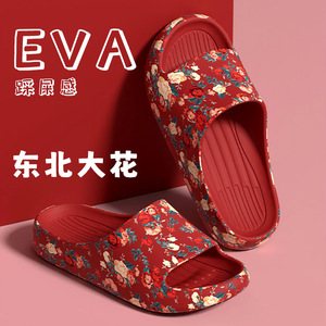 カップル向けのトレンディな東北風の大きな花柄サンダル、屋内外で着用可能、滑り止め、防臭、耐久性、快適なオールインワンEVA