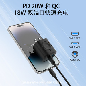 Apple Watch ワイヤレス充電、携帯電話、タブレット、ヘッドセット、ミニ急速充電に適した国境を越えた多機能窒化ガリウム充電器
