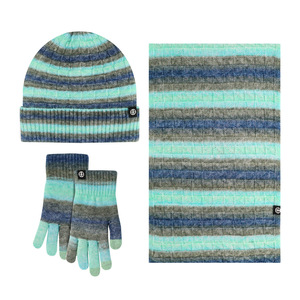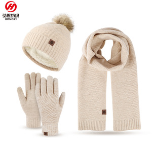 亚马逊新款防寒羊毛针织手套男女加绒加厚帽子围巾手套保暖三件套